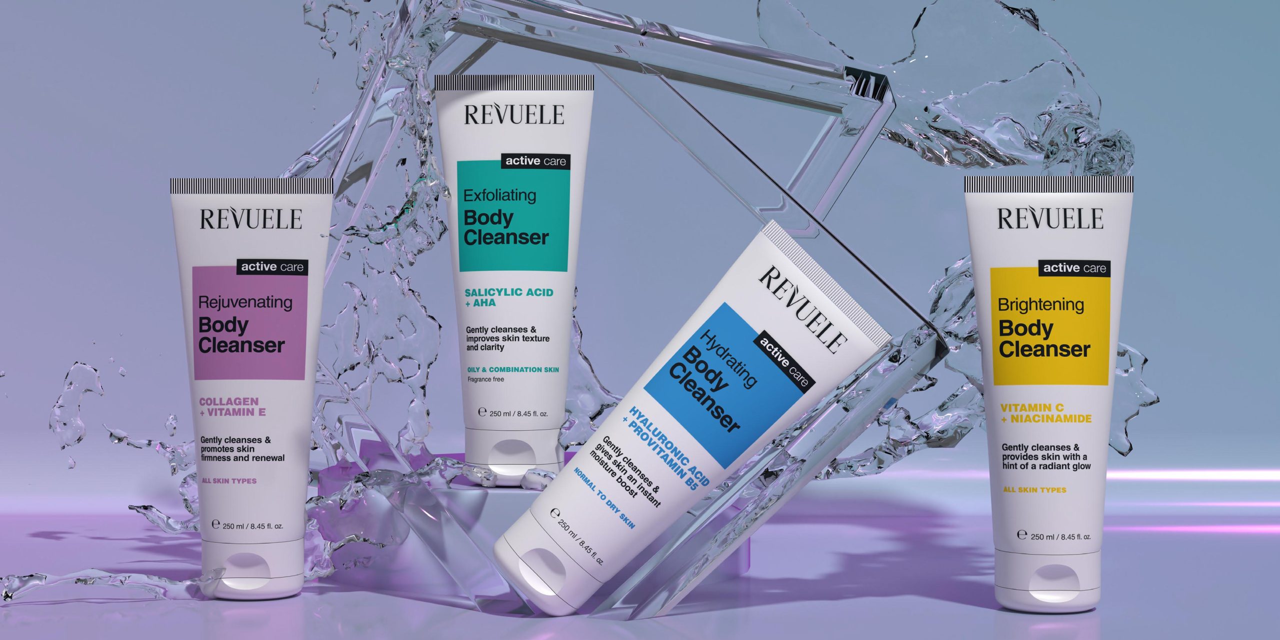 Είμαστε ενθουσιασμένοι που σας παρουσιάζουμε τα REVUELE BODY CLEANSERS, την τελευταία και καλύτερη σειρά καθαρισμού σώματος! Αυτά τα καταπληκτικά προϊόντα είναι ειδικά προσαρμοσμένα για να καλύπτουν τις ανάγκες διαφορετικών τύπων δέρματος, από την ξηρότητα έως τη λιπαρότητα και την ανομοιόμορφη υφή. Όταν αναμειγνύονται με νερό, η υφή τους μετατρέπεται σε έναν απαλό αφρό που εξασφαλίζει έναν σχολαστικό καθαρισμό χωρίς να διαταράσσει το φυσικό φραγμό του δέρματος, αφήνοντας την επιδερμίδα σας να αισθάνεται αναζωογονημένη! Εμπλουτισμένα με ισχυρά ενεργά συστατικά, όπως σαλικυλικό οξύ, νιασιναμίδη, βιταμίνη C, κολλαγόνο και υαλουρονικό οξύ, όλα τα καθαριστικά παρέχουν προηγμένο καθαρισμό και βασικά οφέλη για την επιδερμίδα.
