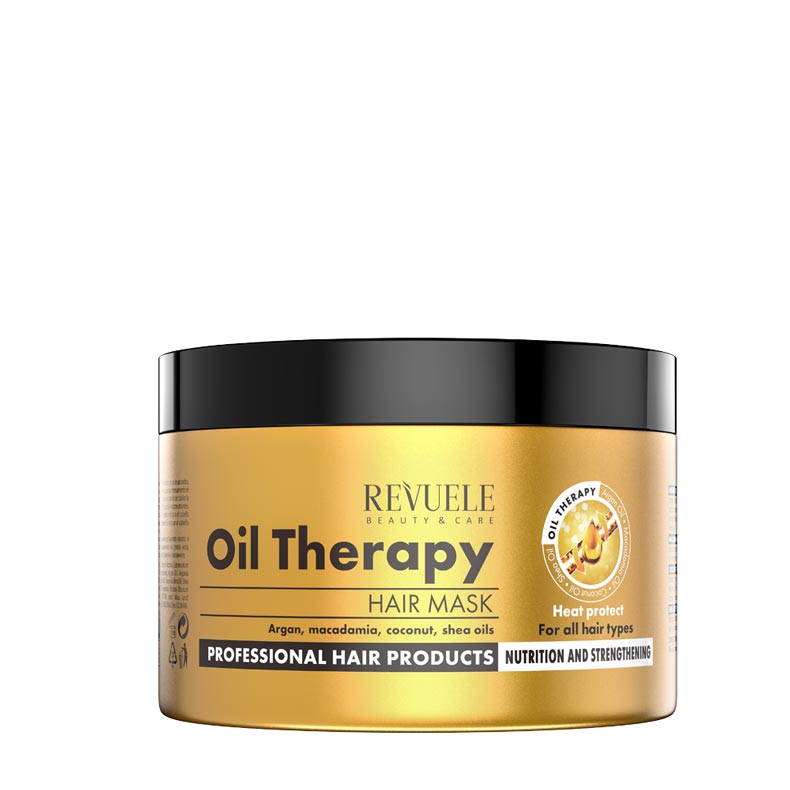 Revuele Hair Mask Oil Therapy With Argan Oil, Macadamia, Coconut And Shea Butter, 500 ml. Επαγγελματική μάσκα μαλλιών που αποτελείται από μείγμα βουτύρου και ισχυρών φυσικών ελαίων, τα οποία σας χαρίζουν μεταξένια μαλλιά με μαγευτική λάμψη.